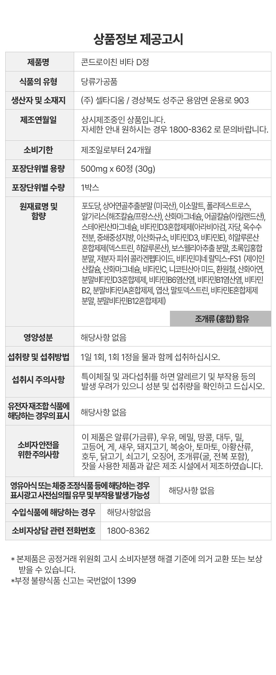 콘드로이친 비타D정 500mg x 60정 약국