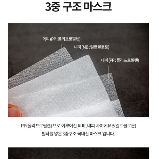 1. 어디서 만든 건가요? 대한민국에서 제조한 상품입니다 2. 비말 차단 기능이 있나요? MB 필터가 포함된 3중 구조로 방수 및 비말 차단 기능이 우수한 제품입니다. 3. 품질검사를 받은 제품인가요? 해당제품은 한국의류시험연구원에서 10가지 이상 품질검사를 완료한 제품입니다. 화이트 제품은 KF94등급의 제품입니다. 4.제품구성은 어떻게 되나요? 30매 1박스으로 구성되어있습니다 화이트 대형 입니다 숨쉬기 편한 일회용 마스크 입니다.