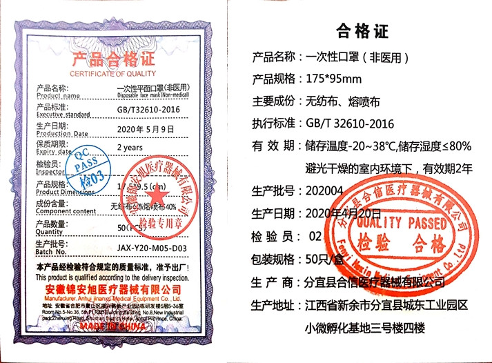 중국산 제품이라도 같은 제품이 아닙니다 저가 상품과는 확실히 다릅니다. 수출 품질 검사를 통과 하였는지 멜트 블로운 필터를 사용했는지 3중 구조의 제품인지 위생적인 박스포장이 되어 있는지 국내 품질 검사를 통과 하였는지 확인하고 판매합니다.