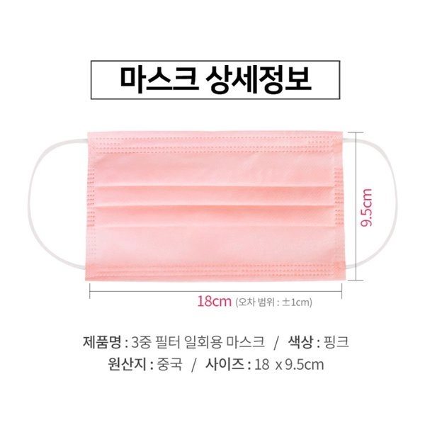 연핑크 3중필터 일회용 마스크 100매