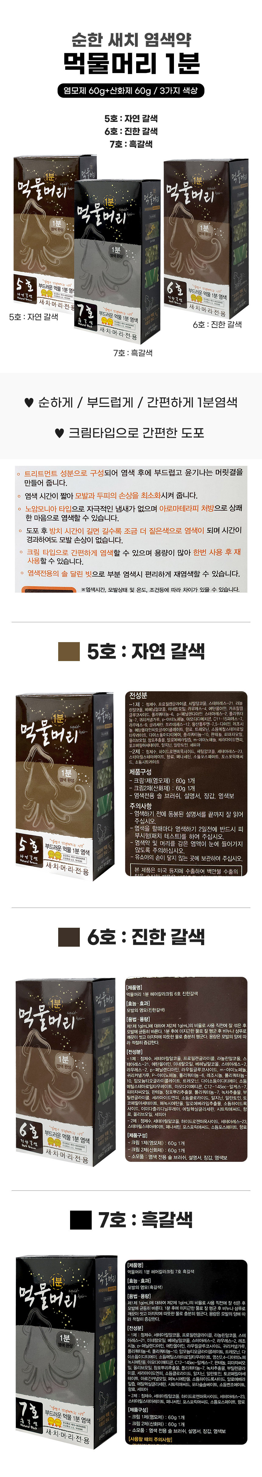 먹물머리 1분 순한 새치 염색약 3개 / 셀프 염색
